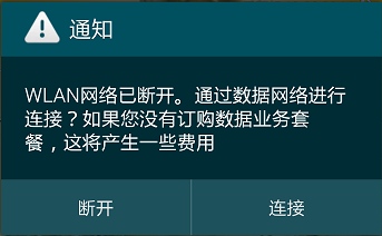 去除三星N9108V的WLAN网络已断开提示,因三星Note4从WIFI覆盖区域转到无WIFI区域时,系统会弹出通知对话框(通知WLAN网络已断开。通过数据网络进行连接? 如果您没有订购数据业务套餐,这将产生一些费用。)